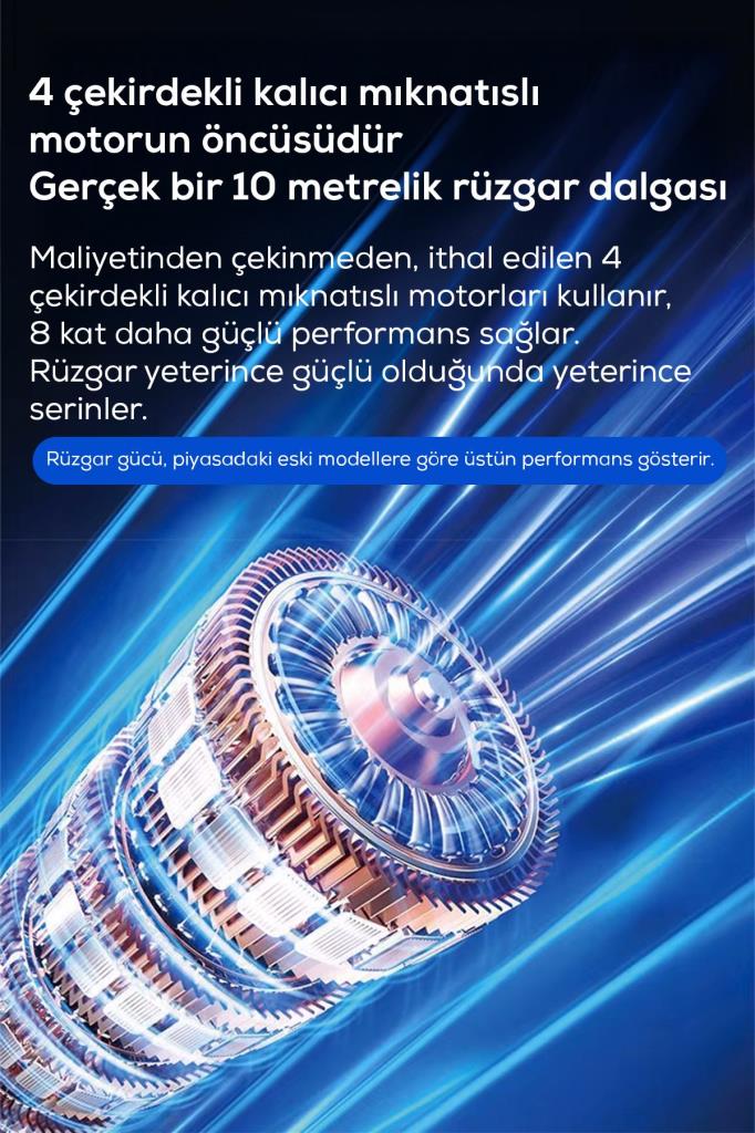 🔹 Güçlü Turbo Motor (4 Çekirdekli Kalıcı Mıknatıs):
