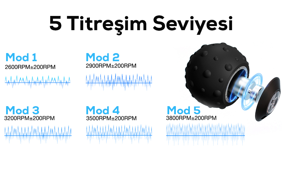 🔹 5 Titreşim Seviyesi: 2600 RPM’den 3800 RPM’e kadar farklı hız seçenekleri.