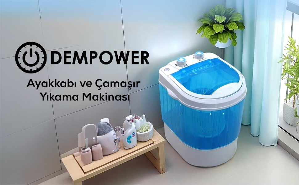 DEMPOWER 6 Kg Mini Taşınabilir Çamaşır ve Ayakkabı Yıkama Makinesi