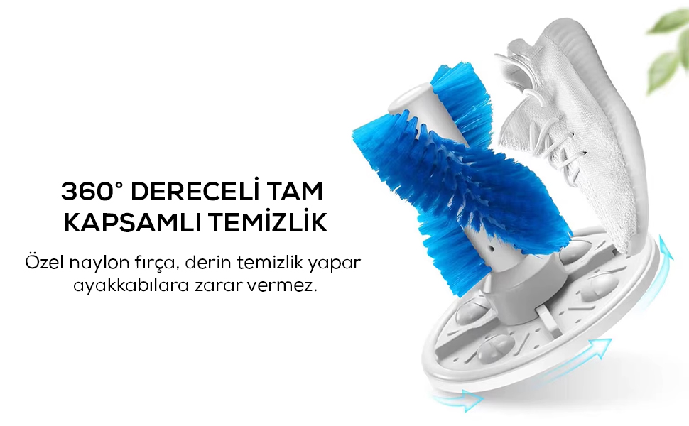 ✅360° Spiral Fırça: Ayakkabılar için özel tasarlanmış, zarar vermeden derin temizlik sağlar.