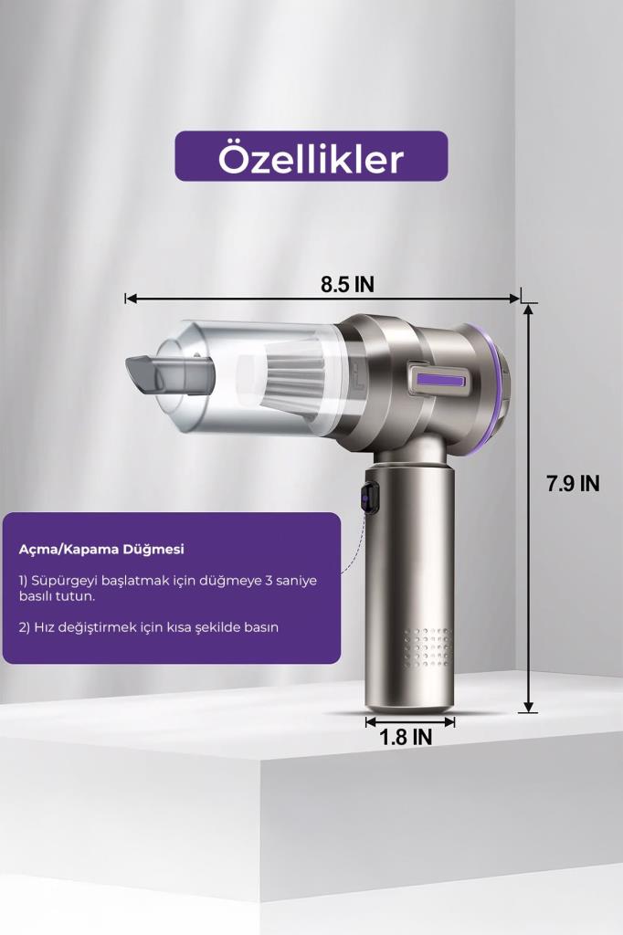 ✅ Kablosuz ve Portatif Tasarım: Kompakt ve hafif yapısıyla kolay taşınır, kablosuz kullanım sayesinde her yerde rahatça temizlik sağlar.