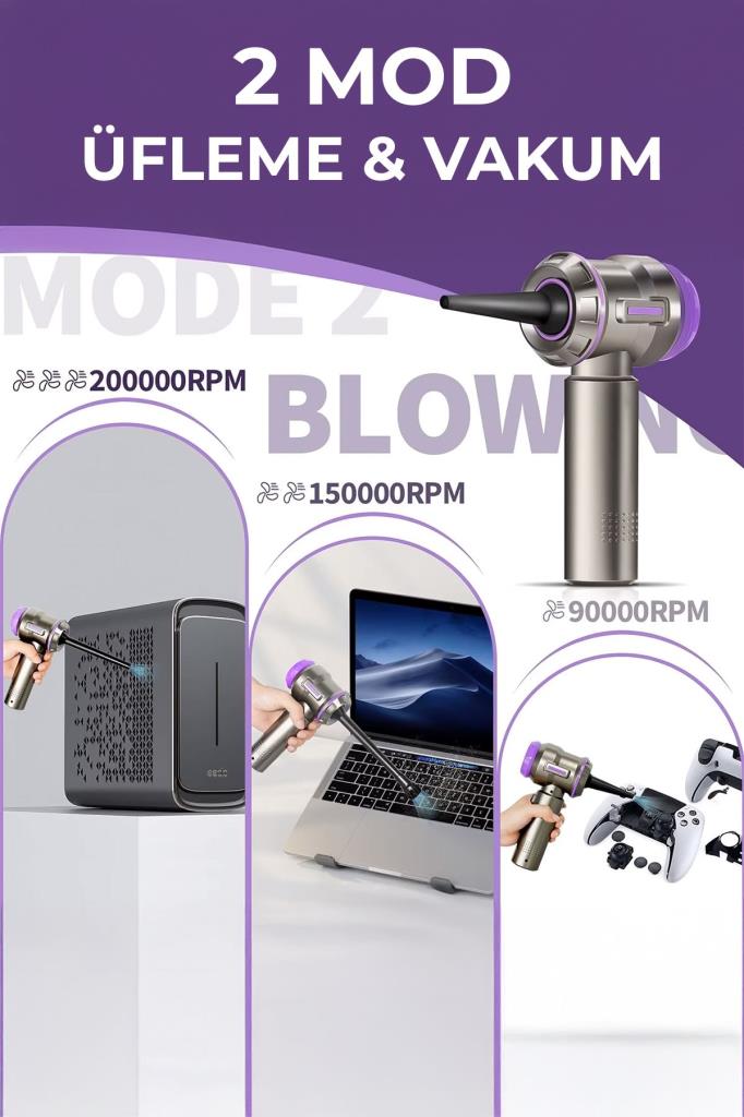 *Üfleme Modu: Bilgisayar kasası, klavye, barbekü kömürü, buzlu cam gibi alanlarda güçlü hava akışı sağlar.