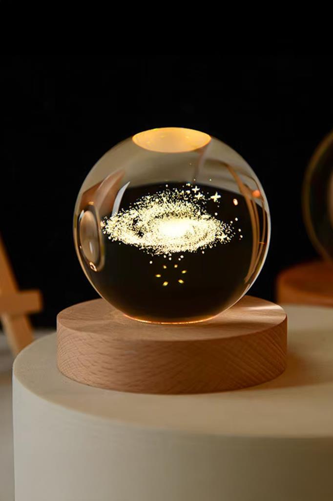 DEMPOWER Ahşap Tabanlı Samanyolu LED Işıklı Küre