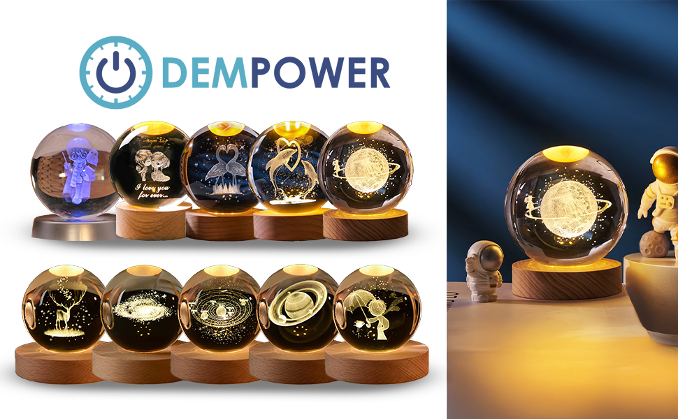 DEMPOWER Ahşap Tabanlı Satürn Kız Figürlü LED Işıklı Küre