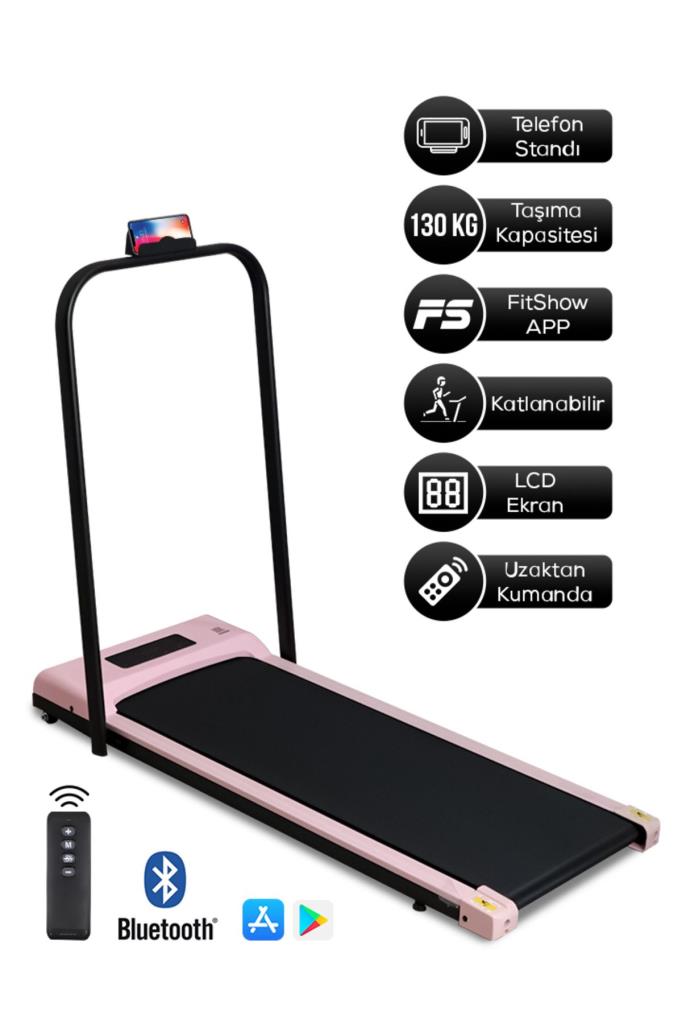 DEMPOWER Bluetoothlu , Uygulamadan Ayarlanabilir Uzaktan Kumandalı Yürüme Ve Koşu Bandı Pembe Renkli