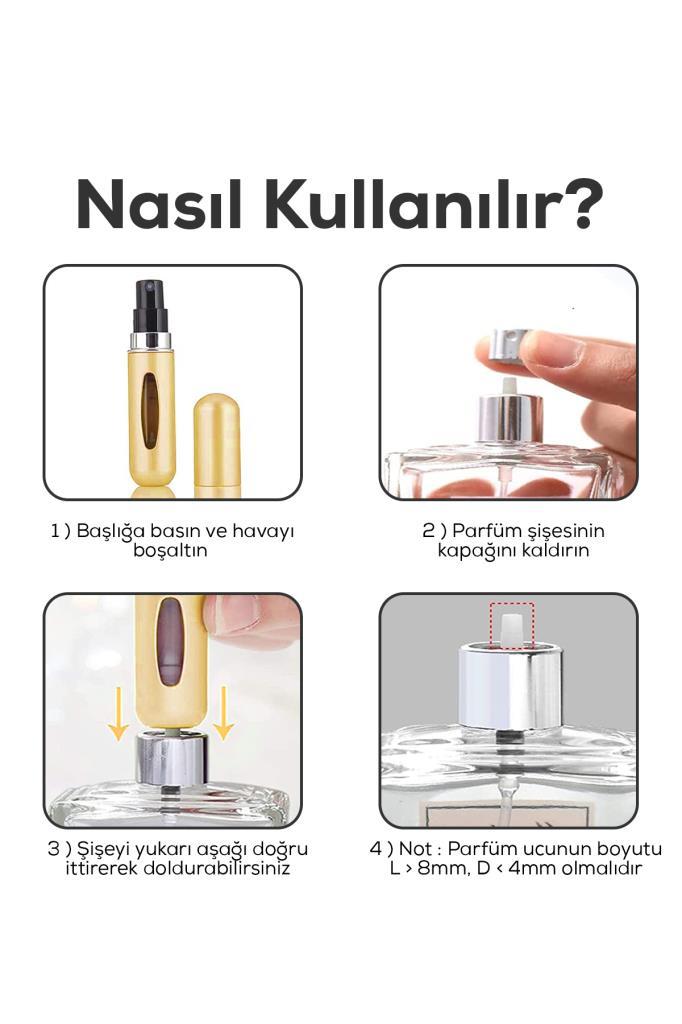 Dolu parfüm şişenizin kapağını çıkarıp cep parfümün alt tabanını yerleştiriniz.