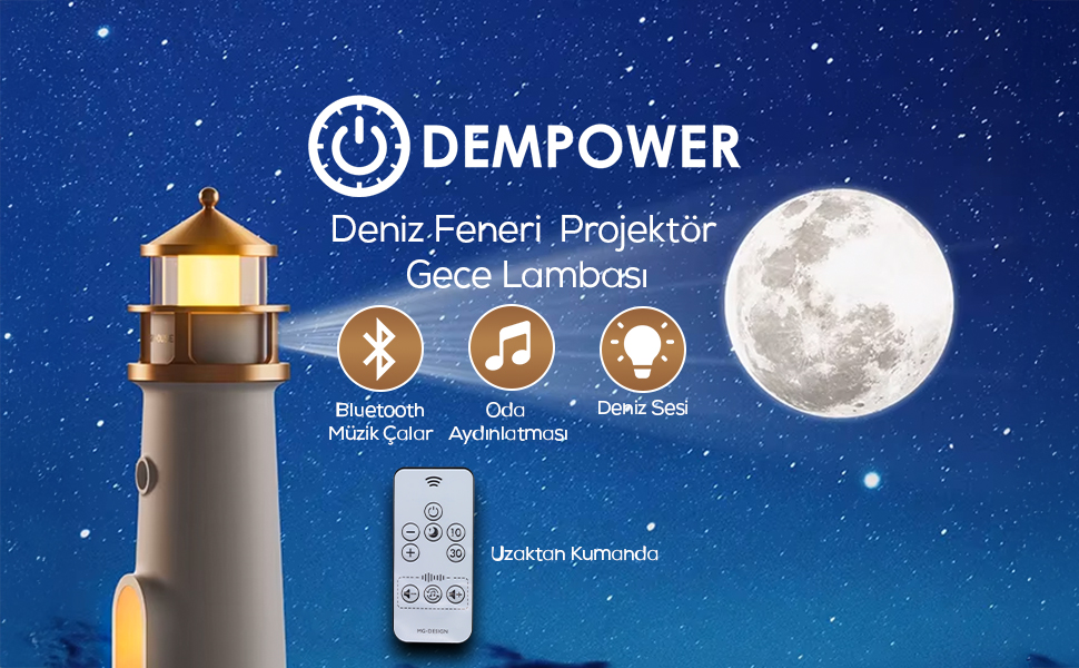 Minimalist zarafetiyle tasarlanmış bu deniz feneri lambası, sadece bir ışık değil, aynı zamanda bir deneyimdir. Göz alıcı ay projeksiyonu, doğa sesleri ve Bluetooth müzik çalarıyla evinizin atmosferini baştan aşağı değiştirecek.