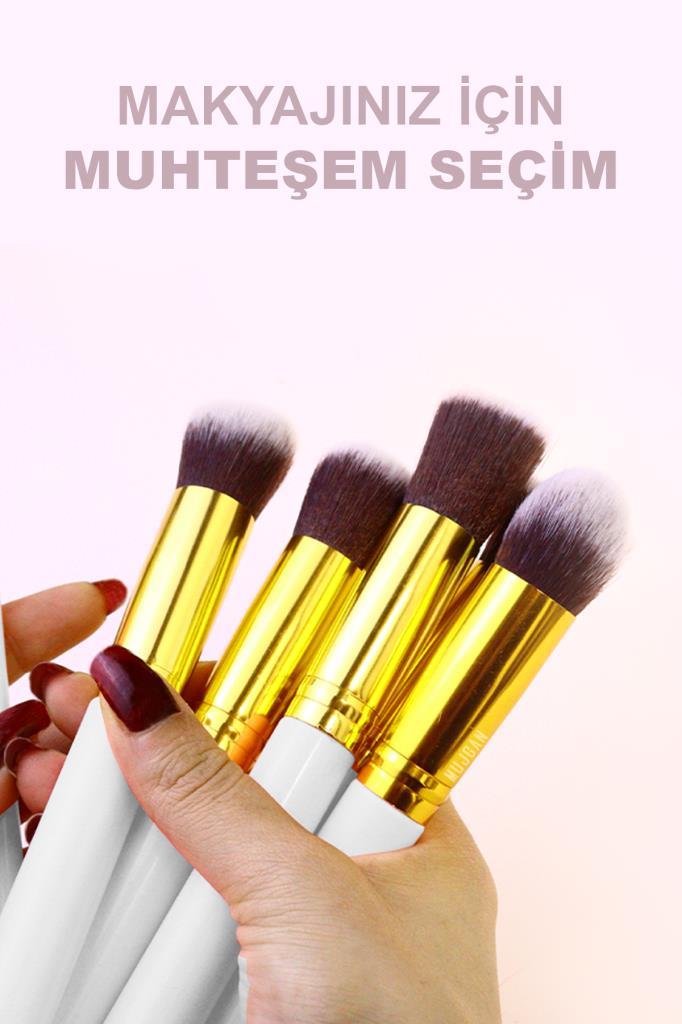 Kalın 5'li Makyaj Fırçası Beyaz Renk