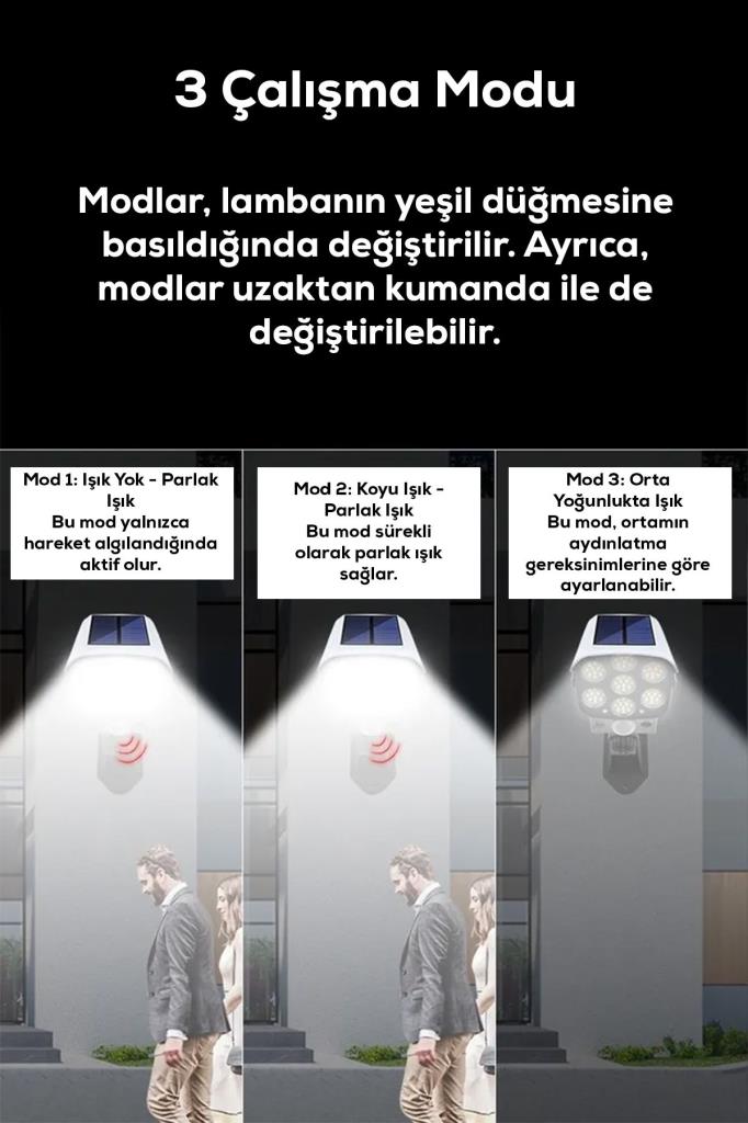 * Mod 1:Işık yok → Hareket algılandığında parlak ışık