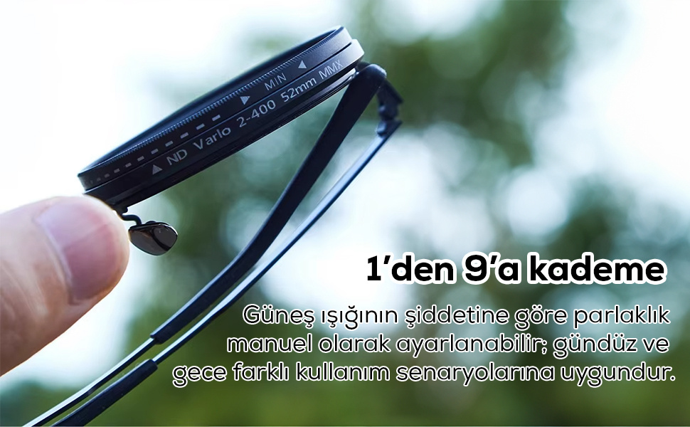 🕶️ Manuel Karartma Özelliği: 1’den 9’a kadar kademeli olarak camın karartma seviyesini ayarlayabilirsiniz.