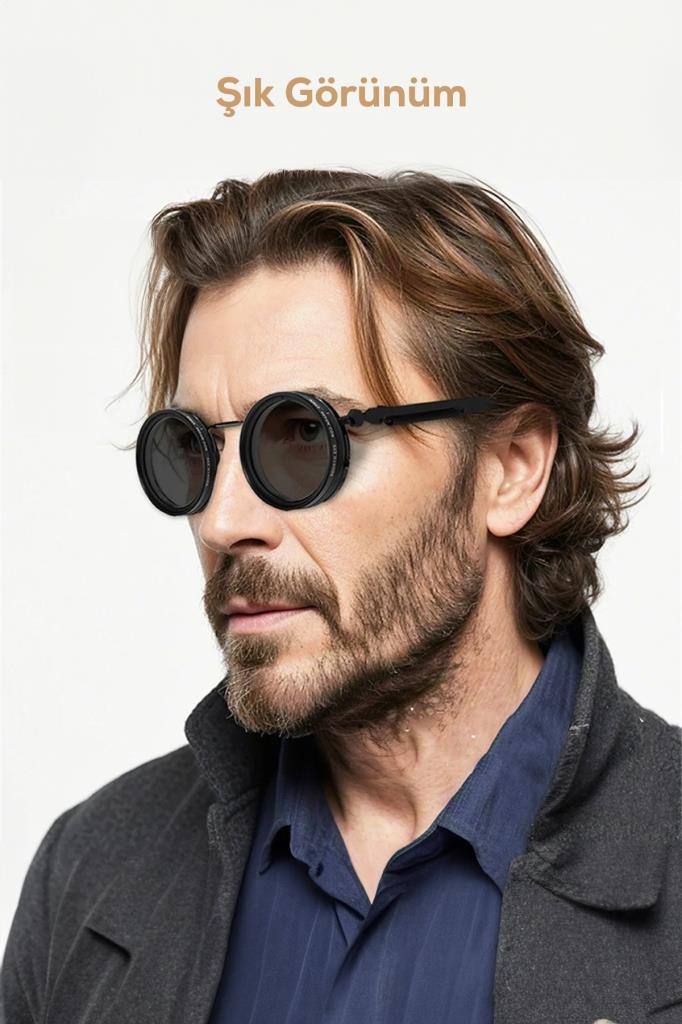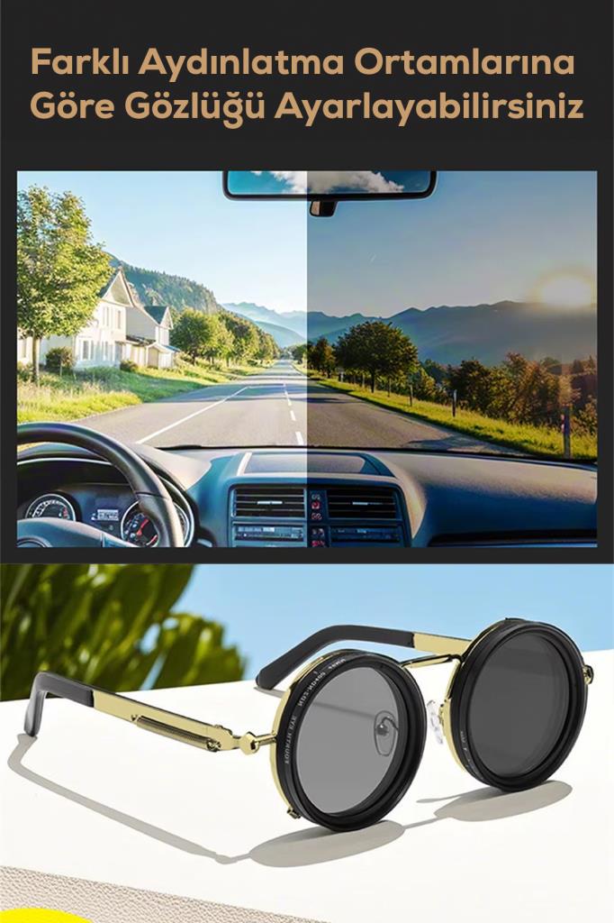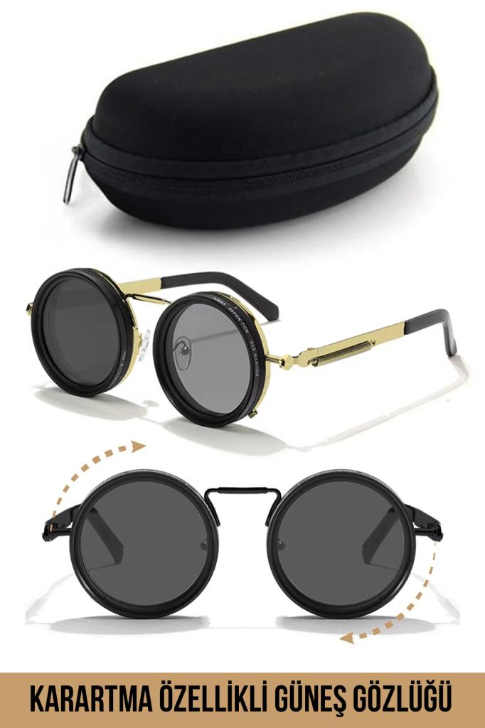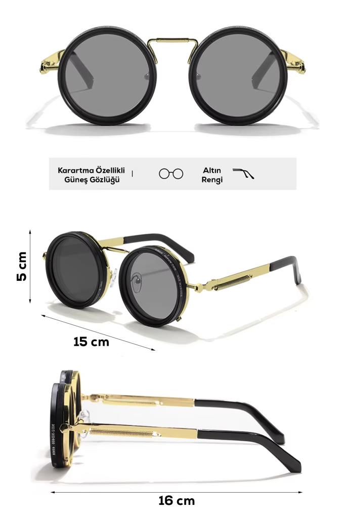 Karartma Özellikli Yuvarlak Metal Çerçeveli Güneş Gözlüğü