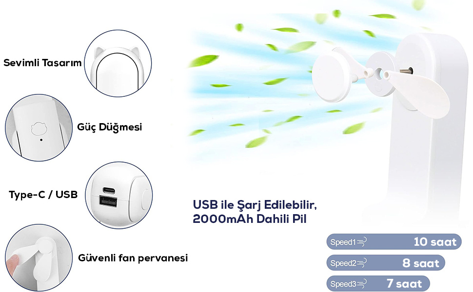 ✔ 2000 mAh Güçlü Batarya: Uzun süreli serinlik ve aynı zamanda acil durumlarda telefonunuzu şarj etme imkanı.