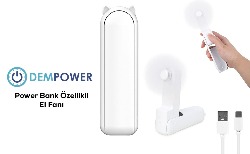 DEMPOWER Katlanabilir Powerbank Özellikli El Fanı