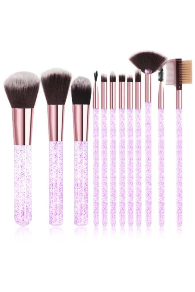 (KIRILABİLİR) 12'li Makyaj Fırça Seti Simli Silindir Mor