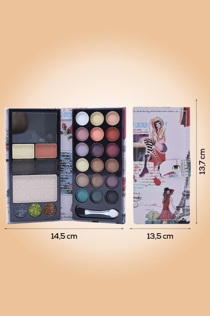 - Tek ambalajda çok sayıda farklı far rengi içeren palettir.Içerisinde farklı tonlarda mat ve parlak renkler bulunur.Açık ve koyu tonlarda günlük ve gece makyajında size eşlik edecek makyaj seti.Yumuşak doku uzak far ve sünger far aplikatörü ile beraber.Kalıcı renklere sahiptir. Ambalajı açılan ürünlerin iadesi yapılmamaktadır.