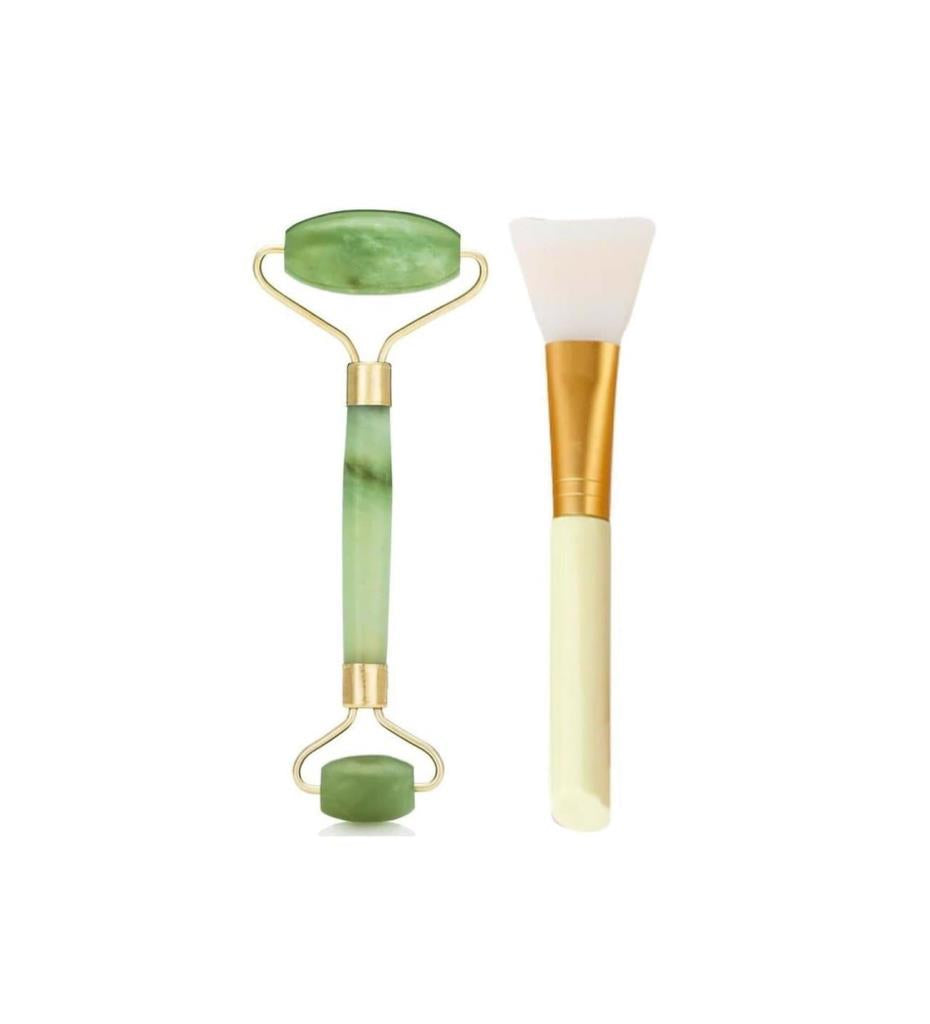 2'li Cilt Bakım Seti Beyaz Silikon Maske Sürme Fırçası + Yeşim Taşı Yüz Masaj Aleti