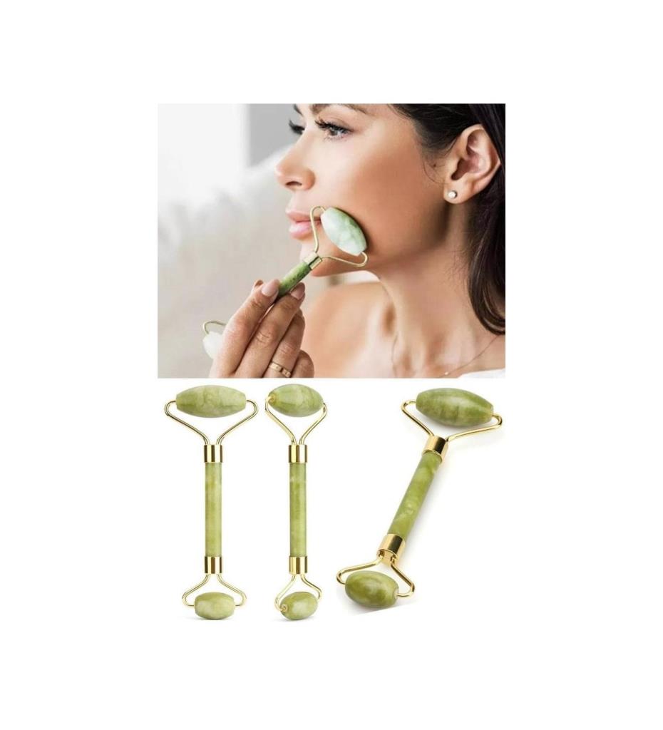(KIRILABİLİR) 2'li Cilt Bakım Seti Beyaz Silikon Maske Sürme Fırçası + Yeşim Taşı Yüz Masaj Aleti