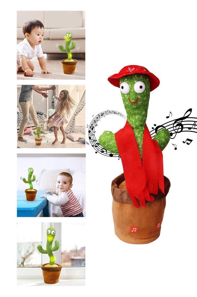 (KIRILABİLİR) Dans Eden Şarjlı Konuşan Kaktüs Kırmızı Şapkalı