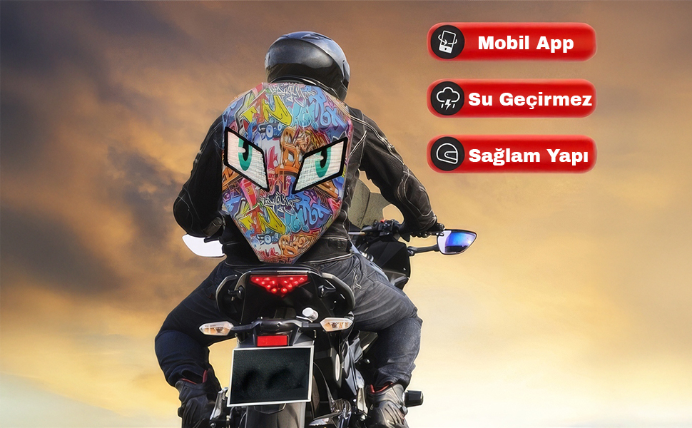 DEMPOWER LED Gözlü Bluetooth Bağlantılı Motorcu Sırt Çantası Renkli