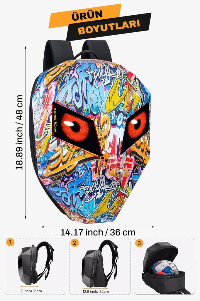 LED Gözlü Bluetooth Bağlantılı Motorcu Sırt Çantası Renkli