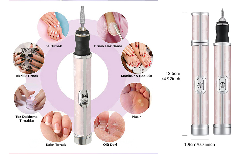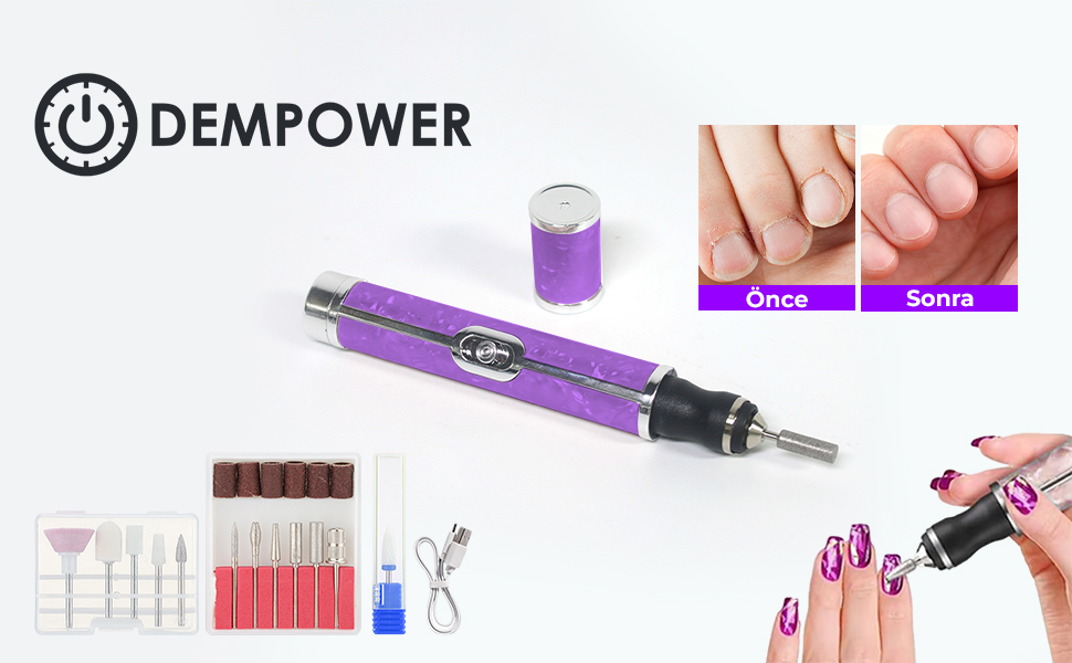 DEMPOWER Şarjlı Taşınabilir 12 Parça Tırnak Manikür Pedikür Törpü Makinesi