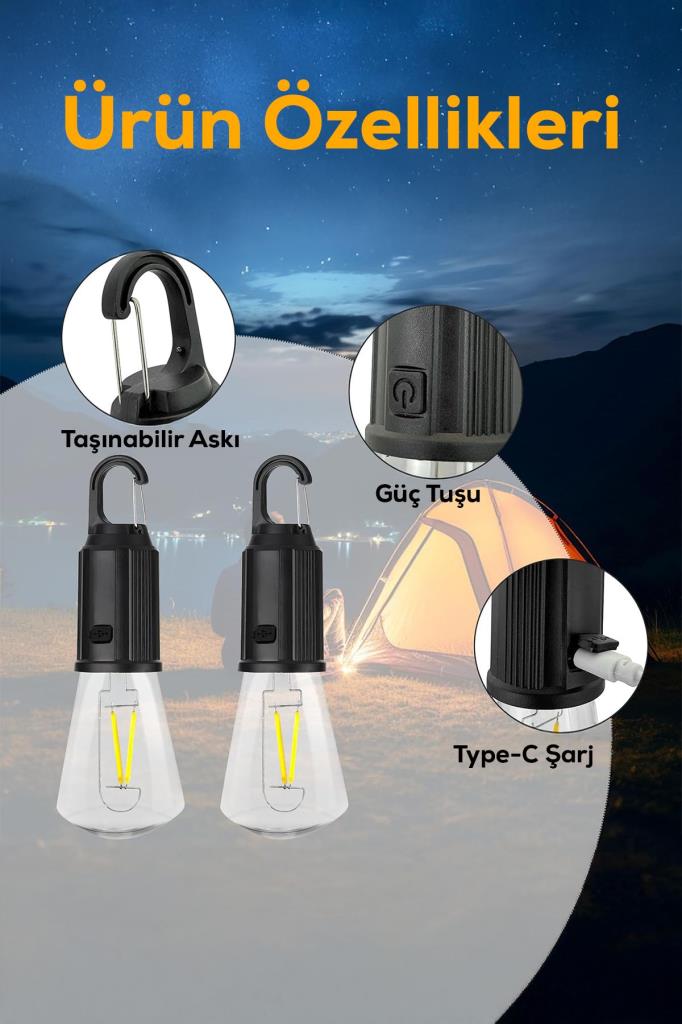🧲 Askılı Taşınabilir Tasarım: Her bir lambanın üst kısmında sağlam askı aparatı bulunur. Çadıra, ağaca, askılığa, çiviye veya ipliğe kolayca asılabilir. Elde taşınabilir veya düz zemine yerleştirilebilir.