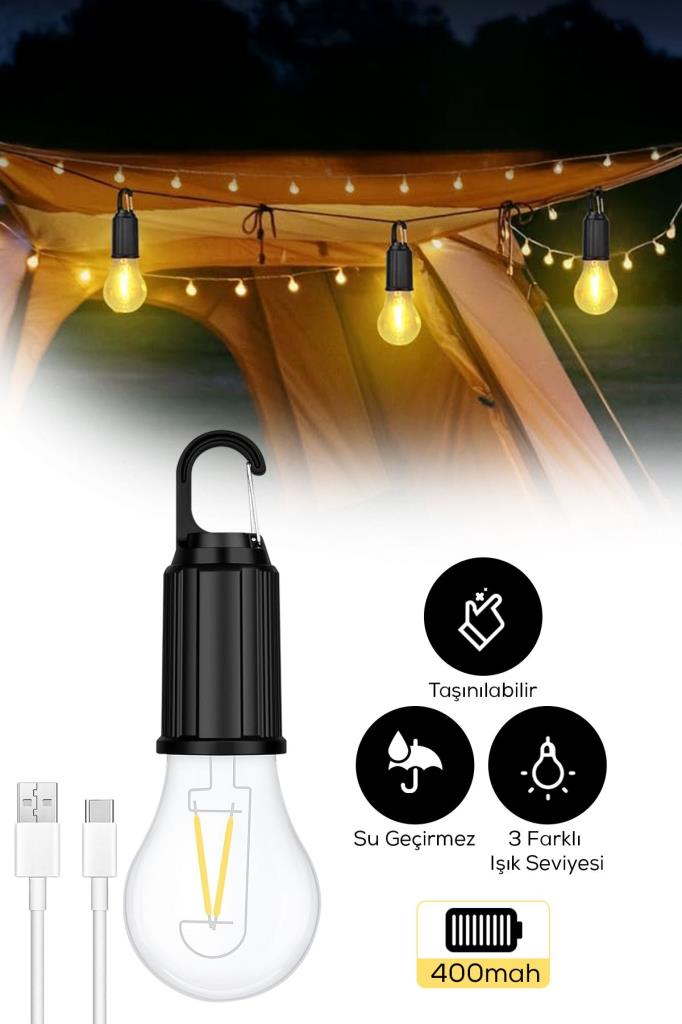🔌 Şarjlı Kullanım: 400mAh bataryaya sahip bu LED ampul, Type-C kablosu ile kolayca şarj edilir. Elektrik olmadan da kullanıma uygundur.