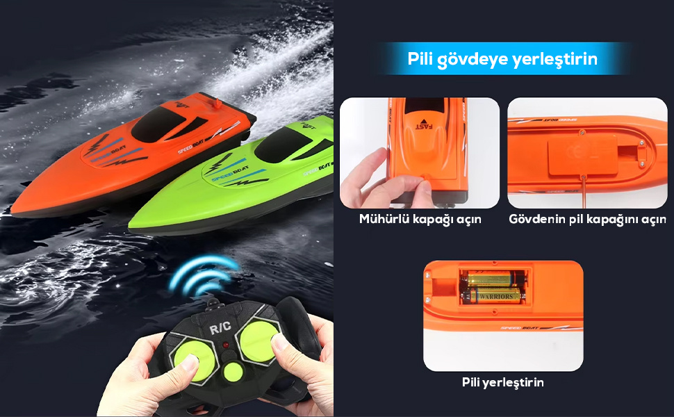 🔹 Pilli Çalışır. Tekne ve kumanda ayrı piller ile çalışır.