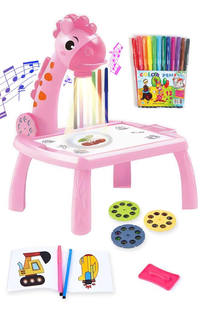 DEMPOWER Zürafa Projeksiyonlu Müzikli Boyama Masası Pembe Renk* 30X23