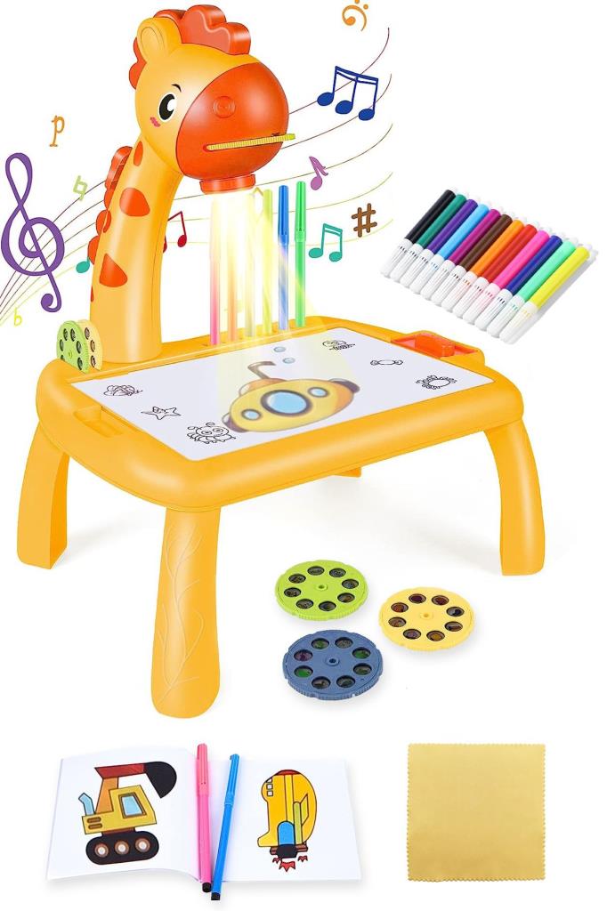 DEMPOWER Zürafa Projeksiyonlu Müzikli Boyama Masası Sarı Renk*26x18