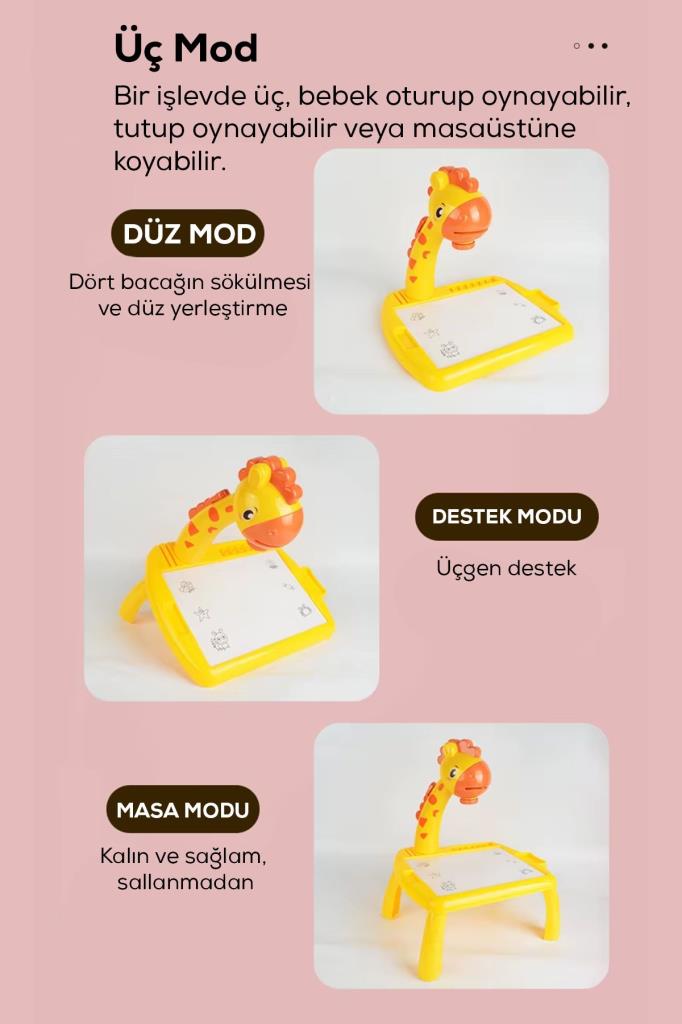 💡 Projeksiyon Özelliği: Yansıtma sistemiyle desenleri projekte eder, çocuklar kolayca çizim yapabilir.