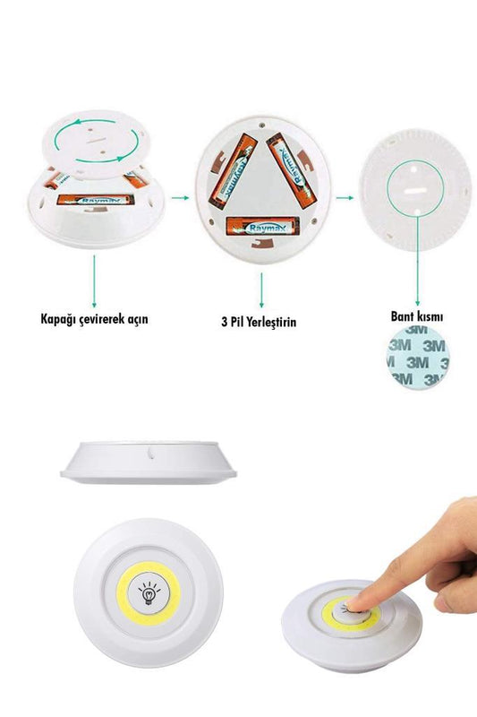 3'lü Uzaktan Kumandalı Yapışkanlı Kablosuz Led Spot Lambalar