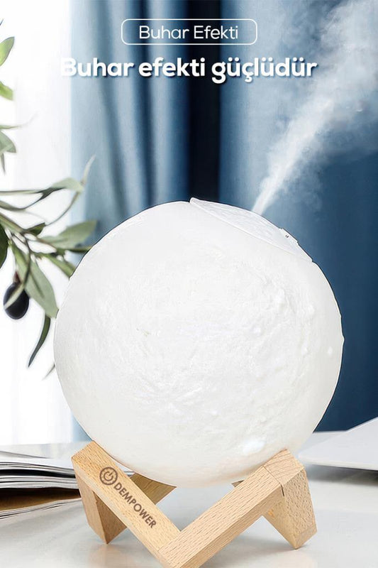 (KIRILABİLİR) Buharlı Standlı 3D Ay Gece Lambası Dekoratif Küre Led